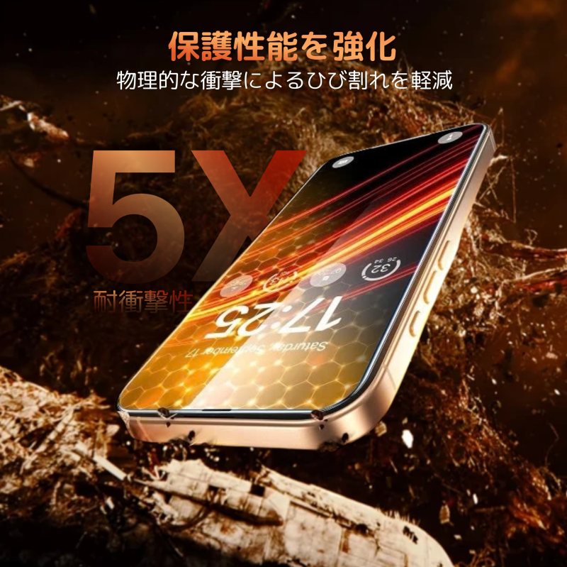 ※硬度 10H:一般的な全面ガラスフィルムの約5倍の強度。