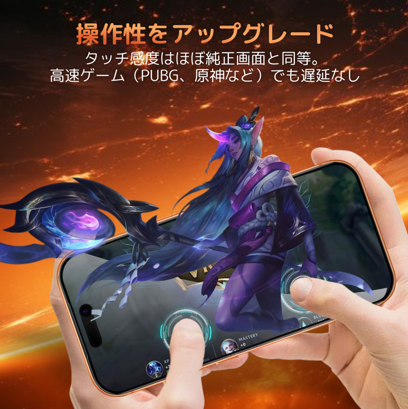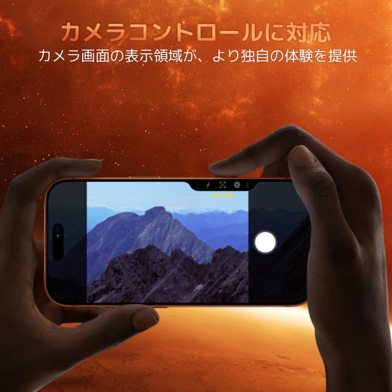 フルスクリーンのベゼルレスデザインに加え、デュアルイオン交換技術を採用。iPhone 14シリーズに最適化され、従来比3倍の強度と優れた復元力を実現します。